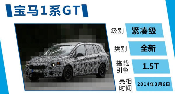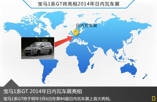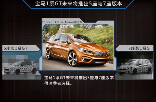 寶馬曾在2012年巴黎車展期間亮相了一款Concept Active Tourer概念車,未來寶馬1系GT將以這款車型為藍本進行打造,此外在今年的廣州車展上,該車也正式在國內亮相。隨著明年3月6日即將開幕的日內瓦車展的臨近,寶馬也將攜1系GT等多款車型參展,屆時這款全新車型將首次亮相,也使寶馬GT家族的車型增至為3款。
