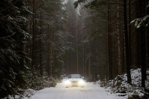 橫穿過從赫爾辛基市區前往冰湖試車地點,有近100公里的路程,從地圖上看,路途曲折,廠家在設計路線時頗為用心,看來英國人對轎車上裝有全時四驅動系統非常自信。