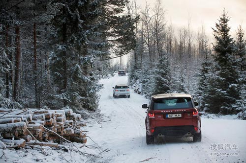 攬勝運動版的試駕項目是通過翻越很大一片片白雪覆蓋的森林,并在無人的高聳林立的樹木之間的越野的路段展現出驚人的抓地能力。