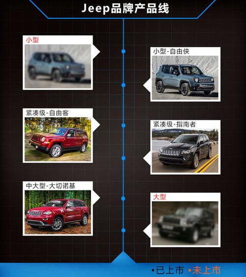 在目前Jeep品牌的車型中可以看出,在小型SUV基本中自由俠是最新的車型,在國內已經有不少的廠商都在推出相應的車型,未來自由俠的引入也只是時間問題。此外Mike Manley所透露的全新大型SUV,將采用7座設計,比已經停產的指揮官尺寸更大,而未來這兩款SUV成功推出后,Jeep品牌將有著齊全的產品序列。