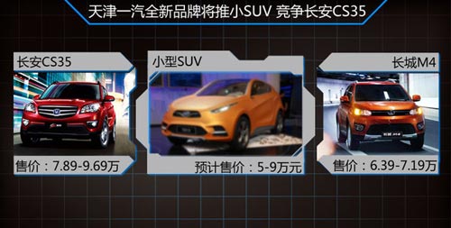 通過全新的動力組合和安全配置,天津一汽全新品牌的首款SUV將與目前市場上主流的自主小SUV抗衡,如長安CS35、長城M4等售價在6-10萬元的區間展開競爭。