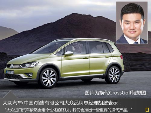 在南北兩家合資公司推進(jìn)大眾在華銷量增長(zhǎng)的同時(shí),大眾進(jìn)口車也在規(guī)劃對(duì)產(chǎn)品線進(jìn)行升級(jí),其中包括CrossGolf在內(nèi)的高爾夫家族產(chǎn)品也將隨著高爾夫7的推出進(jìn)行更新?lián)Q代。大眾汽車(中國(guó))銷售有限公司大眾汽車品牌總經(jīng)理胡波表示:“大眾進(jìn)口汽車依然會(huì)走個(gè)性化的路線,但是在這之上,我們會(huì)推出一些重要的換代產(chǎn)品和新產(chǎn)品?!苯站W(wǎng)通社在走訪多家大眾進(jìn)口車經(jīng)銷商后獲悉:大眾全新一代CrossGolf跨界車有望在明年引入,新車在外觀上將基于高爾夫7做出改變,此外車輛仍有望沿用現(xiàn)款車型1.4T+雙離合的動(dòng)力總成。