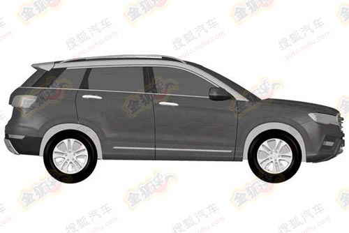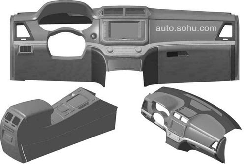 通過專利申報圖中的內飾造型更為直觀明了整個造型風格,儀表盤對比路試車可以看到采用的是雙炮筒式設計方案,而概念車上窄小的頂端信息屏幕被橫置式空調出風口取而代之,并且還略微突出,與概念車那類似路虎版的平直線條風格大相徑庭。