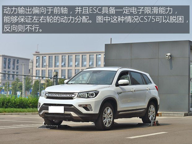 既然四驅是新款CS75的重點,那我們索性就先來看看它的四驅脫困能力怎么樣吧!按照慣例,我們在平地擺放了三組開放式滑輪,CS75需要從正反兩個方向通過。選擇四驅鎖止模式之后,理論上它的前后軸動力就做到了按固定比例分配。不過從實際測試結果來看,這款車的動力輸出仍然偏向于前軸,如果只有一側后輪有附著力的話,那么它將很難脫困。平心而論,長安CS75的四驅脫困能力在城市SUV當中已經算是不錯了,ESC具備一定電子限滑能力,至少比起一同測試的全新途勝要強多了。
