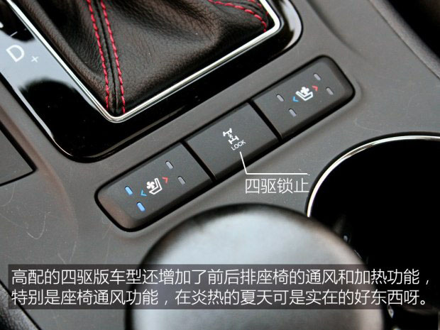 通過儀表上的行車電腦顯示屏,駕駛者可以很直觀地觀察車輛前后軸動力分配的情況。一般在鋪裝路面勻速行駛時,動力會全部分配給前輪,以降低油耗。而在深踩油門加速時,動力會按需分配給后軸一部分,從而提升加速能力。四驅LOCK模式在城市中基本用不到,只有在輕度越野時才能派上用場。只要速度低于40km/h,就可以手動開啟LOCK模式。