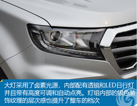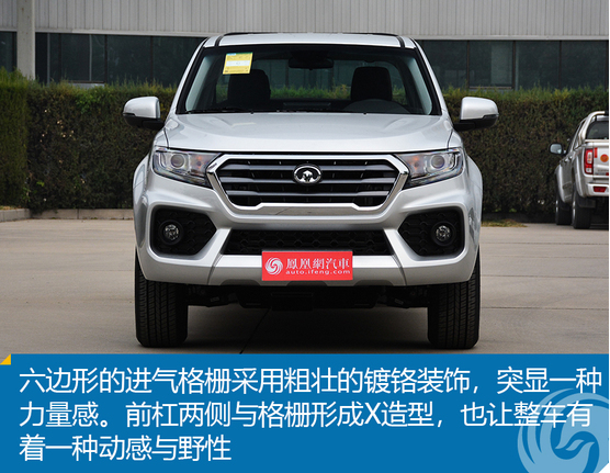 相比其風駿之前的車型,風駿7看起來更為霸氣十足。車頭姿態很高,整車采用更加硬朗的線條,硬派的設計元素更顯美式皮卡的風范。大燈與格柵的設計也更加時尚,貼近于主流。作為一款大雙排皮卡,整車車身長度將近5米4,在駕乘空間與拉貨能力方面,都有著突出的表現。