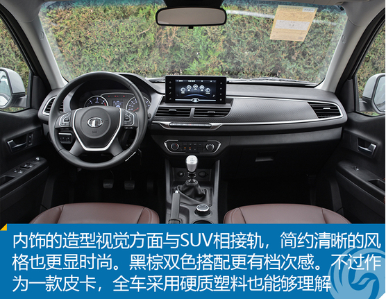 內飾方面,雖然風駿7并沒有采用軟質搪塑,這對于皮卡來說也并無必要。而內飾的整體設計更偏向如今的SUV車型,設計簡潔而有層次,配色與視覺質感更顯檔次。中央大屏與哈弗品牌采用了相近的UI設計,操作起來十分順手。而對于這樣一款車身很長的皮卡來說,倒車影像這樣的配置也非常的必要。當然,全車帶有側氣囊和氣簾,并標配ESP,對安全負責任的態度,是很多同級別國產皮卡并不能夠做到的。