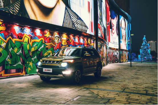 當我們的BJ20跨越千余公里來到濟南,麻辣味道瞬間換成了蔥香。為了與用戶和媒體的充分溝通,它似乎無暇享受當地美食,只是趁著深夜在解放閣前留下足跡,在寬厚里旁稍事休息,待它來到老商埠早已眾人離去僅有五彩光影與它為伴了。BJ20為何只在夜間出行?因為在此之前它正在有型有色的“型動派電音趴”上與大家分享著勁歌熱舞和繽紛涂鴉所帶來的時尚氣息。