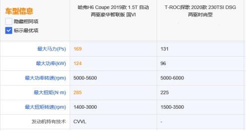 新哈弗H6 Coupe采用了1.5L排量的渦輪增壓發(fā)動(dòng)機(jī),這可是“中國心十佳發(fā)動(dòng)機(jī)”,另外,還具有CVVL技術(shù)(連續(xù)可變氣門正時(shí)),性能參數(shù)甚至超過很多同排量的合資發(fā)動(dòng)機(jī)。探歌采用了大眾經(jīng)典的1.4L排量的渦輪增壓發(fā)動(dòng)機(jī),但調(diào)校比較保守,在最大功率和最大扭矩上落后較多(見下表)。在試駕過程中也能很明顯感覺到新哈弗H6 Coupe起步加速比較迅猛,探歌則稍顯肉一點(diǎn)。