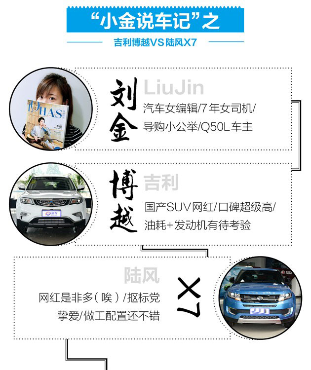 這次為大家準備的是吉利博越1.8T自動智慧型(兩驅)和陸風X7 2.0T全景旗艦版,兩款車型指導售價相同,長得都不差,又都是“網紅”,誰對這個車型市場更有誠意?往下下下下看吧~