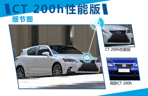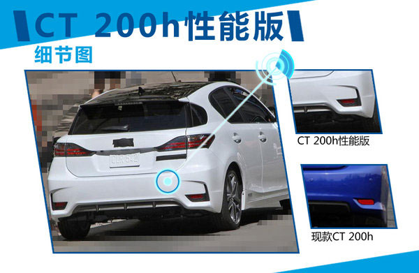 從外觀來看,雷克薩斯CT 200h性能版與現(xiàn)款最大的區(qū)別來自于前臉部分,新車前臉更換成了雷克薩斯家族紡錘式前臉,采用黑色蜂窩狀裝飾,前霧燈外部則改為C形,尾部保險(xiǎn)杠也有小幅調(diào)整。