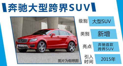 縱觀奔馳在華的產品線,其在SUV細分領域的產品線布局并非完善,例如在跨界車型方面奔馳還尚屬空白。記者此前從奔馳方面了解到,在2015年奔馳將推出一款跨界SUV車型,該車將與M級采用同平臺打造。但是在整體風格上,全新跨界車型將采用轎跑車的設計,突出其運動性氣息。