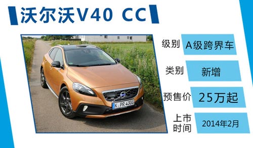 2013年4月16日,沃爾沃汽車在上海車展前夕正式推出了V40車型,其上市后銷量一路飆升,在去年11月份更是取得了單月銷量1033輛的優異成績。看到V40在中國市場受歡迎程度如此之高,沃爾沃決定將推出其衍生車型V40 Cross Country跨界車。其實早在2012廣州國際車展上,沃爾沃便攜該款車型完成首發。隨著V40CC現身工信部輕型汽車燃油消耗通告當中,也預示著這款車即將進口國內。