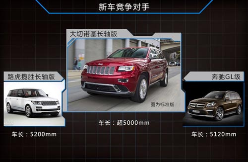 新車上市后,將與路虎攬勝長軸版和奔馳GL級等車型競爭。從尺寸上來看,其超過5米的車長將具備足夠的競爭力,將會為第三排乘客提供更充足的乘坐空間。相信憑借著Jeep品牌的影響力,其上市后將會占據高端SUV市場一定份額。