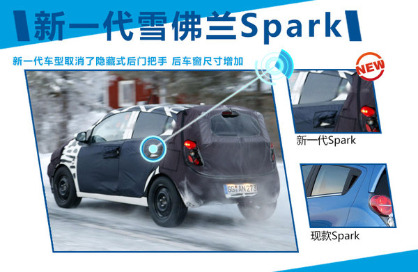 雪佛蘭Spark是通用汽車(chē)專門(mén)針對(duì)年輕人的喜好所獨(dú)身打造的產(chǎn)品,憑借著時(shí)尚的外觀和創(chuàng)意,在美國(guó)、加拿大等地區(qū)得到了不錯(cuò)的反響。而該車(chē)距離上一次換代已有近5年時(shí)間,其全新一代車(chē)型有望在2015年正式退出。近日記者查閱相關(guān)資料后發(fā)現(xiàn),新車(chē)將采用重新調(diào)校后的1.2L發(fā)動(dòng)機(jī),車(chē)身尺寸方面將會(huì)有所加長(zhǎng),同時(shí)原本后門(mén)上的隱藏式把手將被取消。