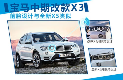 寶馬在今年春節期間發布了中期改款X3的官方圖片,新車在外觀設計上已經趨向于最新的家族設計,其開眼角式的前大燈與即將上市的全新X5保持著高度的相似。在動力以及驅動系統上,新車還增添了兩款后驅車型,分別為sDrive18d、sDrive20i,前者搭載了2.0T柴油增壓引擎,后者則繼續使用寶馬N20系列的2.0T低功率發動機。