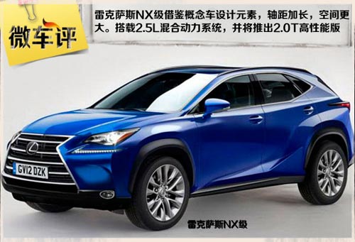 日前,一張雷克薩斯全新SUV NX級(jí)的效果圖現(xiàn)身網(wǎng)絡(luò)。該車預(yù)計(jì)將于2014年3月日內(nèi)瓦車展發(fā)布,并于10月海外上市。新車價(jià)格約為3萬英鎊左右(折合人民幣約29萬元)。