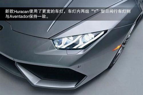 蘭博基尼Huracan相比已經(jīng)停產(chǎn)的蓋拉多有了不小的改進(jìn),全新設(shè)計(jì)的前大燈看上去更加兇狠。蓋拉多上那款長條形的車燈已經(jīng)被廢棄,新款Huracan使用了更寬的車燈,車燈內(nèi)兩組“Y”型日間行車燈則與Aventador保持一致。
