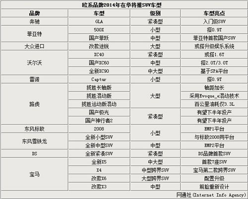 2014年有望上市或亮相重點車SUV車型介紹
