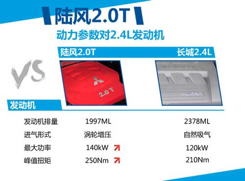 新款陸風(fēng)X8最大的變化便是新增了2.0T的汽油增壓發(fā)動(dòng)機(jī),該車(chē)也是繼X5車(chē)型之后,第二款搭載2.0T汽油增壓發(fā)動(dòng)機(jī)的車(chē)型。據(jù)悉,這款2.0T引擎為沈陽(yáng)航天三菱汽車(chē)發(fā)動(dòng)機(jī)制造公司提供,最大功率可達(dá)140kW,峰值扭矩為250Nm。動(dòng)力性能可媲美傳統(tǒng)2.4L自然吸氣發(fā)動(dòng)機(jī),與大眾知名的2.0TSI發(fā)動(dòng)機(jī)不相上下。