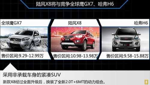 目前國(guó)內(nèi)眾多自主品牌SUV都已相繼推出搭載增壓發(fā)動(dòng)機(jī)的車(chē)型,陸風(fēng)汽車(chē)也開(kāi)始實(shí)現(xiàn)全面增壓化。在推出搭載2.0T發(fā)動(dòng)機(jī)的新款陸風(fēng)X8后,該車(chē)會(huì)與奇瑞瑞虎、哈弗H6等目前市場(chǎng)中熱銷(xiāo)的SUV車(chē)型競(jìng)爭(zhēng)。