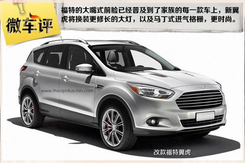 在2014日內瓦車展上,改款福克斯也換上了家族式的“馬丁”大嘴。近日,海外媒體發布了一張改款翼虎的假想圖,新車也采用了“馬丁”式大嘴。