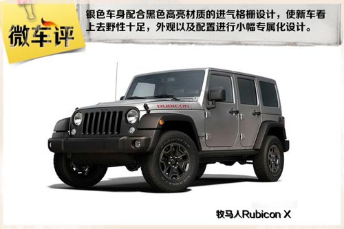 配置方面:牧馬人Rubicon X配備有17英寸輪圈、真皮方向盤、胎面花紋的地墊、6.5英寸信息顯示屏、40GB硬盤以及Uconnect信息娛樂系統。