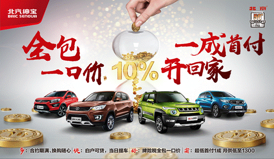 一次性付清全款有難度?沒問題,北汽紳寶通過“全包一口價(jià)”將車價(jià)、購置稅、車船稅、保險(xiǎn)、車牌費(fèi)等相關(guān)費(fèi)用整體打包,你只需支付10%的首付款就能輕松將愛車“貸”回家,最大程度解決你資金不足的難題。