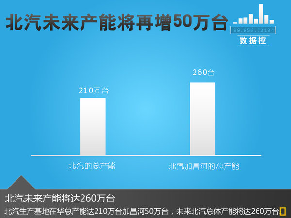 在北汽收購昌河后,昌河汽車將劃歸至北汽集團新成立的整車事業部,北汽或將獲得原隸屬于昌河汽車的景德鎮、九江兩個整車工廠和九江發動機工廠,具備年產30萬輛整車和15萬臺汽車發動機的生產能力,合肥昌河仍然隸屬長安汽車資產。昌河汽車還將擴產達到50—60萬,再加之北汽原有六大基地的210萬臺產能,未來北汽在自主版塊的總體產能將達260萬臺以上。