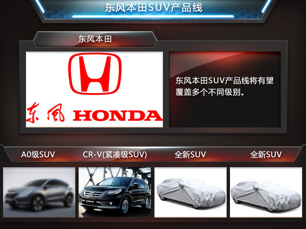 實(shí)際上,本田早在去年北美車展發(fā)布了一款全新概念車“Urban SUV Concept”,本田技研工業(yè)株式會社中國本部長倉石誠司曾表示:本田將以這款Concept V概念車為基礎(chǔ)分別開發(fā)兩款全新小型SUV,并于2014年后分別投放廣汽本田和東風(fēng)本田。如果加上這款小型SUV,東風(fēng)本田旗下SUV產(chǎn)品線將覆蓋至A0級和A級兩個級別,那么從車型定位來看,或?qū)⑿略龅牧硗鈨煽頢UV將有望覆蓋到中型以及大型兩個級別。屆時,東風(fēng)本田SUV產(chǎn)品線得到有效補(bǔ)強(qiáng),從而為其擴(kuò)充市場份額提供有力支持。