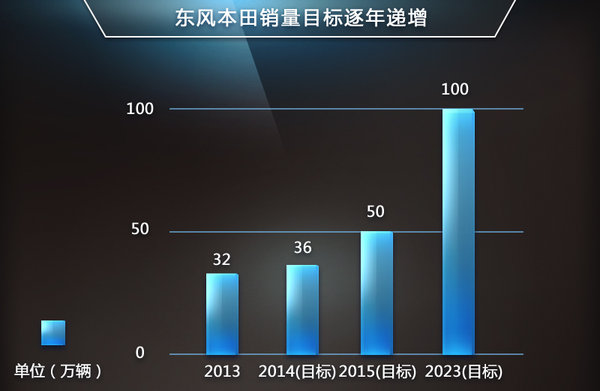 東風(fēng)本田在去年成立十周年之際,正式發(fā)布了名為“挑戰(zhàn)1+”的中期事業(yè)計劃,規(guī)劃2023年前成為年產(chǎn)銷100萬、累計1000萬客戶的企業(yè)。2013年,東風(fēng)本田銷量同比增長14%,全年達(dá)成321,440輛,創(chuàng)下企業(yè)成立十年來的最好成績,連續(xù)兩年實(shí)現(xiàn)10%以上的增長。今年上半年,東風(fēng)本田從139384輛同比提升23.3%至171860輛。隨著SUV車型的逐漸增多,東風(fēng)本田將在2015年迎來爆發(fā),產(chǎn)銷目標(biāo)將躍升至50萬輛。