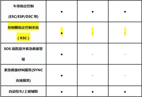 通過圖表我們能夠清晰的看出,無論是制動力分配系統、剎車輔助系統,還是牽引力控制系統、車身穩定系統,福特翼虎、大眾途觀、本田cr-v都有配備。