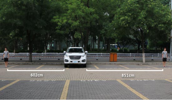 哈弗H9的駐車雷達探測范圍可達3225px,屬同級中上游水平,伴隨車輛逐漸接近障礙物,蜂鳴聲變化明顯且較為及時,至發出最終警示音時,障礙物距車尾的距離為975px。