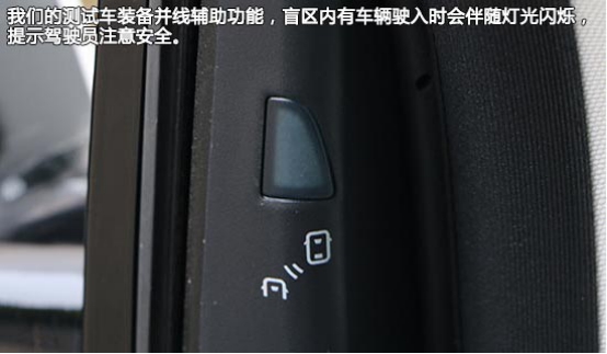 值得肯定的是,哈弗H9的后視鏡采用的藍色鏡片,在遇到后車遠光燈時,能夠起到防眩目作用。不僅如此,測試車裝備有并線輔助功能,通過燈光提示,可以彌補視野盲區帶來的影響。