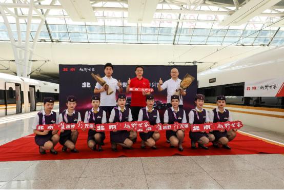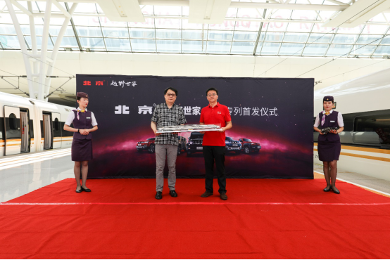 7月23日,北京越野攜手中國高鐵打造的“北京?越野世家”品牌專列G122次“復興號”列車,在上海虹橋站正式鳴笛啟程,縱貫蘇皖魯冀,一路向北開抵北京,拉開了中國高鐵“復興號”和北京越野聯手的序幕。從23日起,還將有多班次“北京?越野世家”品牌專列陸續發車,駛向祖國大江南北。在中華人民共和國建國70周年之際,中國高鐵“復興號”與北京越野強強聯手,再一次讓“中國制造”驚艷世界。