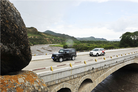 沿G6京藏高速出京,先是高速后是國道,400公里的路程,駕駛著紳寶X65一路向北,隨行的還有更適合到草原的北京(BJ)40。作為北京汽車面向SUV和越野車市場推出的兩款車型,它們外觀和性能迥異,一個硬橋硬馬,堅守越野本性,體現極致越野精神,一個發力在城市SUV市場,注重城市運動性能和使用功能性,它們是不同產品領域之中的佼佼者,分別對應著不同的消費群體。